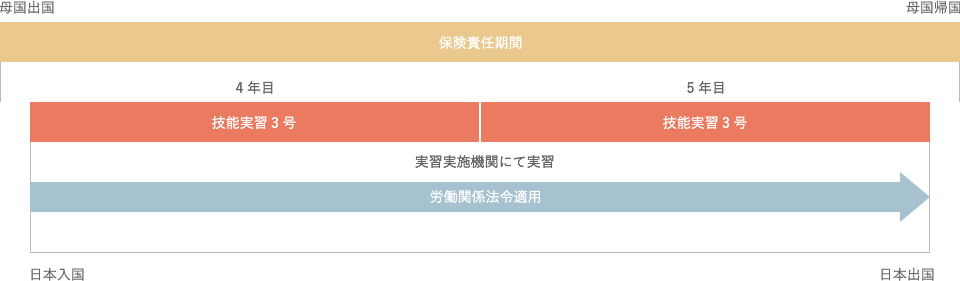 技能実習3号の技能実習生は入国直後から企業の雇用下に置かれるため、最初から労災保険、健康保険等が適用されます。